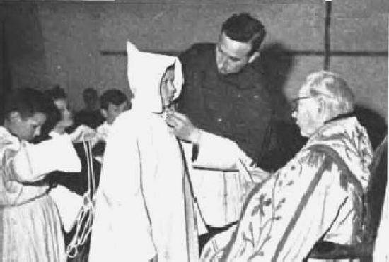 Figure 1.--This photograph was taken in 1953 at the Eglise St. Germain. I think our chotister is being awarded his aube and Croix of St. Dominique. |