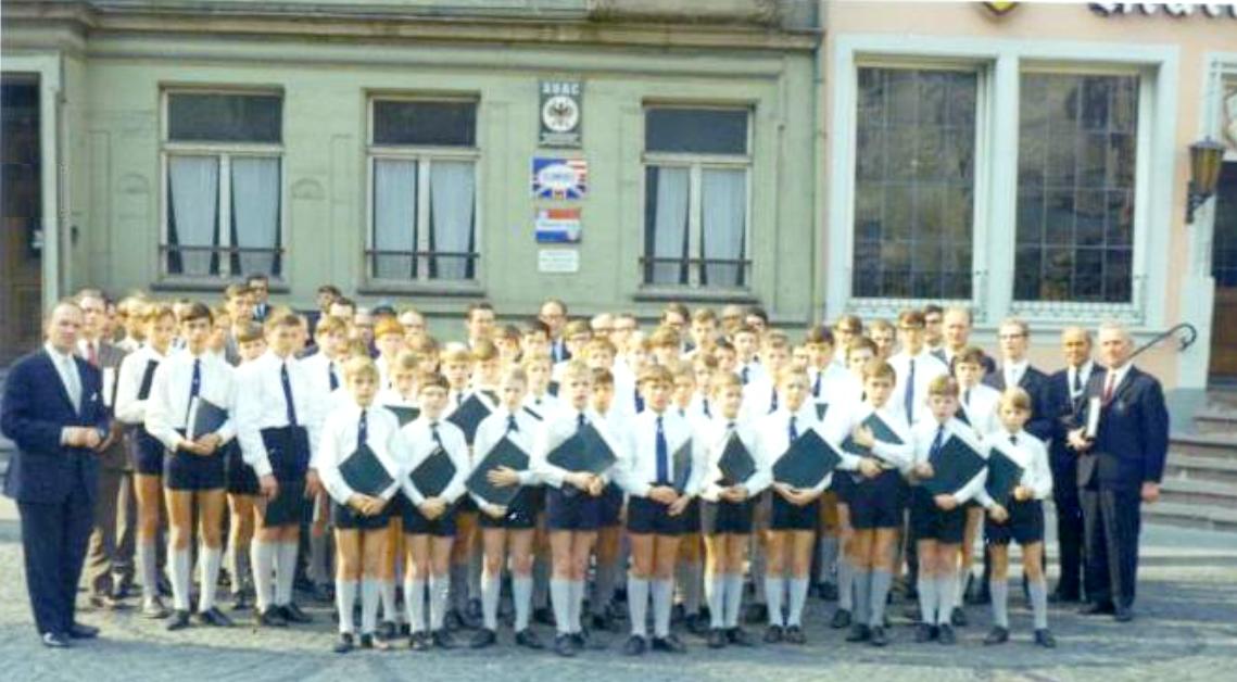 We note some images during performancves, but very poor quality. The Choir traveled by coach/bus to all kinds of intersing places within driving range of Boxall, providing all kind of touristic expeiences. The choir visitd Clervaux in Luxenbourg (1956). We note another photograph from a trip to Wittlich (about 1968). This is a town in Rhineland-Palatinate, Germany, relatively near the Netherlands. The town dates back to Roman times and has as a beautiful historic town center. The Choir sang a lot in churches and at concerts in the Netherlands and Germny.