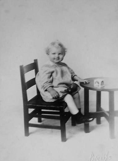 One infant portrait shows Billy Blaisdell wearing a romper suit. This becanme a popular style for younger children. It was primarily as is the case here a plasy suit rather than dress up clothing. It is a voluminous suit that we see Anerican children wearing at the time. The detailing looks rather like a Russian blouse detailing. His hair is not yet long enough to be done in ringlet curls. He looks to be about 1 years old, but not yet 2 years.