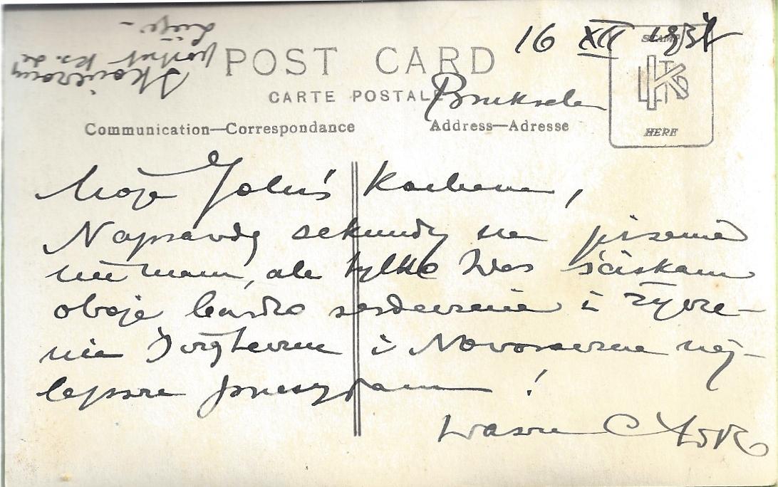 The Postcard was mailed from Liège, a city in Belgian Walonia where French is spoken and French culture is dominant. The address is not apparent.