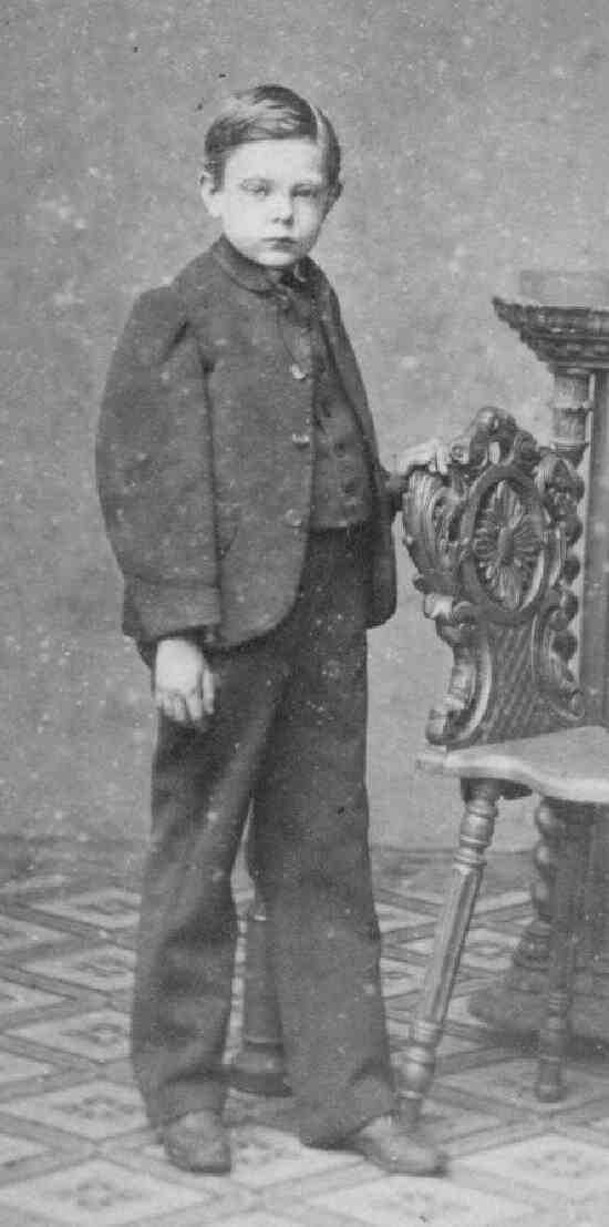 We have very few images of the suits German boys wore in the 1860s so our information is still quite limited. We notice suit jackets with collars rather than lapels like the boy's jacket here (figure 1). The portrait here is undated, but looks to have been taken in the 1860s. All we know about the portrait is that is was taken in Chemnitz, Germany. The jacket here has three buttons andi believe a collar button. Vests or waistcoats were common. The jackets are styled very plainly without any detailing at all. Most images we have seen show boys wearing long pants suits. The boy here is quite young. We do not know his precise age, perhaps about 9 years old, but he is wearing a long pants suit. Many of the suits do not seem to have a well-fitted look. Ready made suits were still not common.