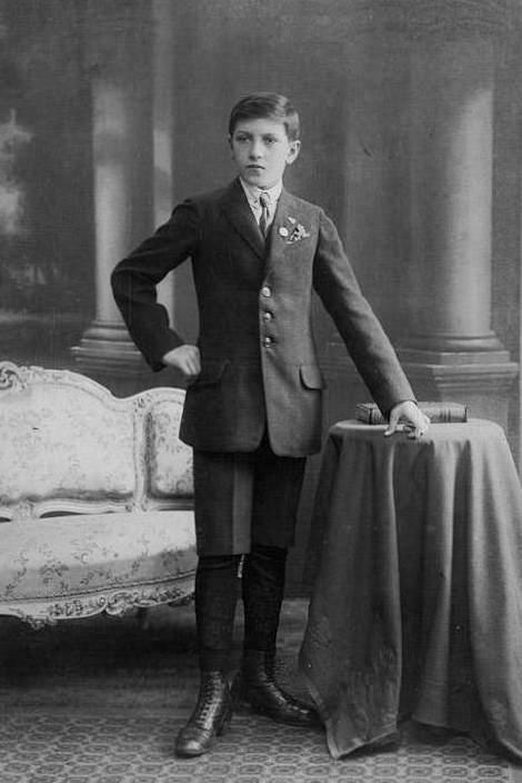 Younger German boys wore a variey of different suit styles in the 1910s. The suits worn by younger boys were much more diverse than those worn by older boys and men. We note many charming portraits of Germany boys dressed in a wide aray of differet suit styles for their first day of school. We see many boys wearing sailor suits rather than types of sack suits. Collar-butoning suits jackets were also very common. Younger boys mostly wore knee pans suits, but we see some suits done with bloomer knickers. Older boys were more likely to wear sack suits with lapels. We see both single and double breasted jackets. Some have a rather modern look. Norfol styling was poplar. We see both knee pants and long pants suits. Here age was the principal factor, but conventins varied from family to family. Boys often got a more adult-looking suit for his confirmation at about age 13 years. We note relativey small lepels in the 1910s. Many of these suits, however, were done with knee pants. Knicker suits were not very common.
