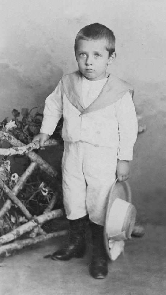 Figure 1.--Pisti even at 3 years of age in 1894 has his hair cut. His brothers have not yet arrived. He wears a plain kneepants sailor suit. Note the collar is done in a different color, perhaps light blue. Note his huge wide-brimmed sailor cap. |