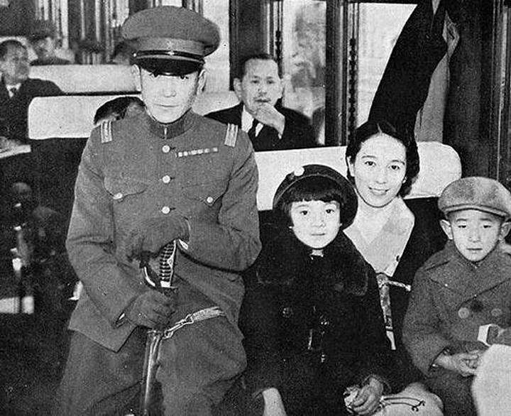 This is a photo of the distinguished Japanese athlete, Takeichi Nishi, who was a famous entrant in various riding competitions worldwide. He is shown here with his two young children, a daughter and son, and his wife. They have just boarded a train in Tokyo and are enroute to Berlin where Nishi will compete in the famous 1936 Olympic Games. He did not win the riding events there, but he was very well known throughout Japan and Europe during the 1930s. He was attached to the First Cavalry in the Japanese army, hence his uniform and the sword which he wears. He was associated with horses his whole life long. He continued to serve in the Japanese army during World War II. Notice the family's Western dress. This was not common at the time, especially for girls and women. We see some modern city families dressing like this, but not generally conservative army families. Probably the fact that they were headed to Europe was a factor.