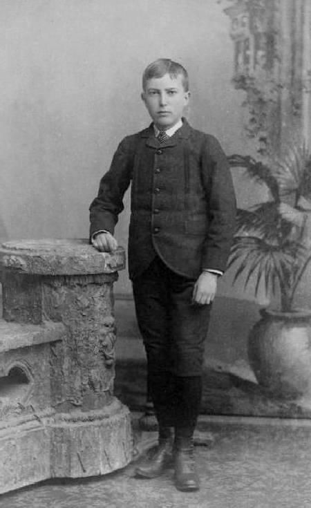 Older boys' wore sack suit jackets. There were a range of variations in the styling of these jackets. Here we are discussing the construction, not decoration. Jackets could be quite plain. The lapel was the destinguising feature of these suits. Sack suits generally had "V" fronts with lapels, but there were some exceptions. These lapels have varied greatly over time, both the placement and width. We see some 19th century jackets with small lapels set very high. The lapels have since increased in sized and length. We have noted both narrow and wide lapels. While the lapels are the most prominant features, there are other featurs such as shoulders, pockets, both breast and side hip pockets. The pockets differed in size, placement, and detailing. The length of the jackets also varied. We also see different cuts of the bottom hem. Some were rounded like cut-away jackets. Other jackets were cut straight across at the hem. There were also tightly fitting jackets, including some taken in at the mid section. Others had more of a loose, baggy cut. There were also differences in the back of the hacker, although this is more difficutvto assess in the photographic record.