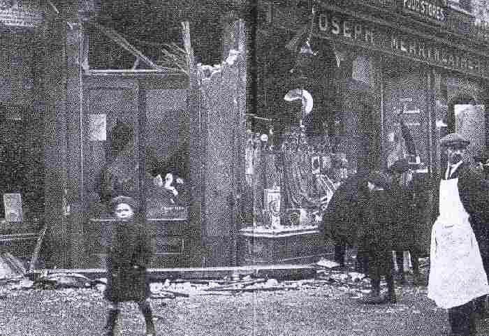 December morning passing a badly damaged shop. He can be seen wearing shoes, a winter