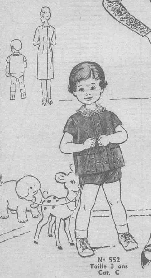 The French sewing magazine Femmes d'aujourd'huis in 1964 offerd a pattern for a "costme baby" for a 2-4 year-old boy. They were made in two different styles.