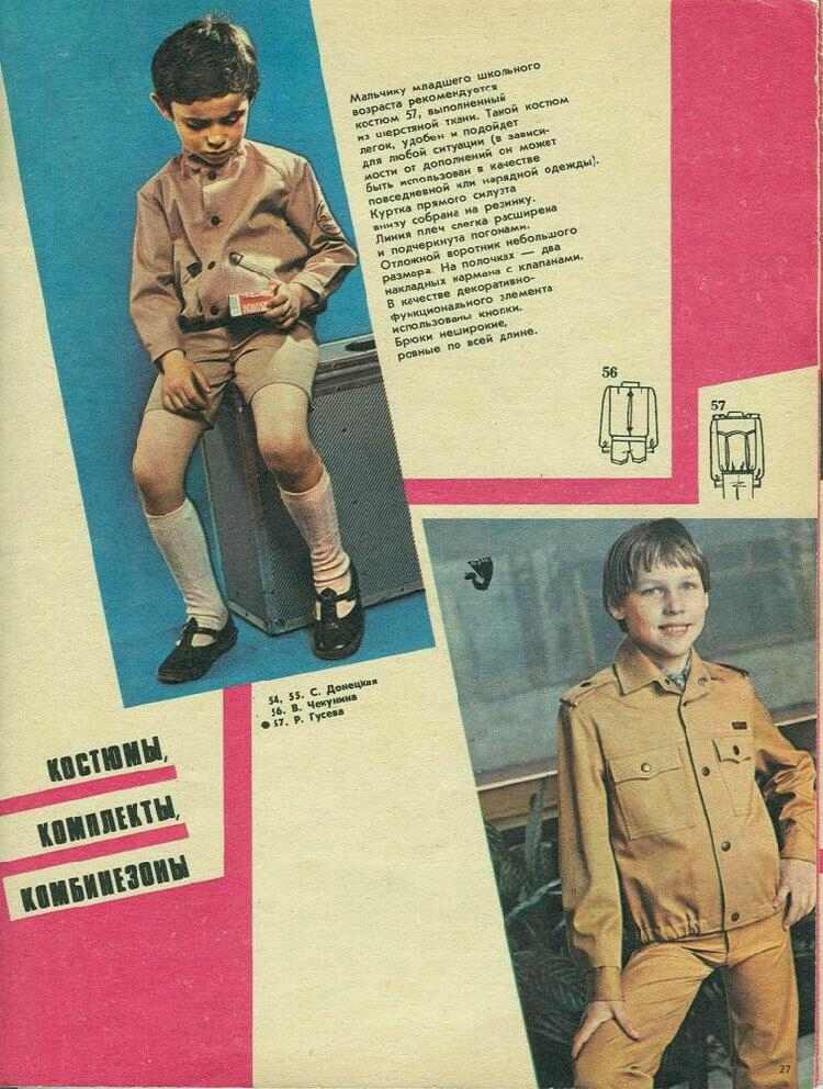 A HBC reader has provided some pages from Russian fashion magazines and what look like catalogs, although the Soviets did not have catalogs where you could buy clothes. Notice that there is no price information. The Soviet consumer may have been able to buy patterns, but we are not even sure about that. We notice one page which overed what look rather like leisure jackets. There were two jacket styles with matching pants. There were short pants for the younger boy and long pants for the older boy.