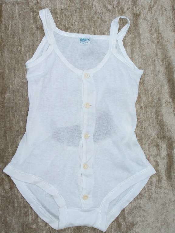 We notice an American Pilgrim one-piece sleevless drop-seat underwear for younger children from the 1930s. Pilgrim was the Sears store brand for underwear and hosiery. We think this was for both boys and girls. We do not know much about underwear, but believe that this was a fairly common garment for younger children during the 1920s and 30s.
