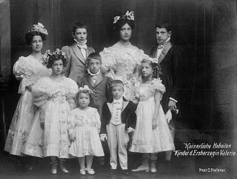 Marie Valerie appears to have chosen her new huband well. By all accounts she and Franz Salvatore appear to have had a happy marriage, at least their large family suggests this. They were blessed with ten children, Elizabeth (1892), Franz (1893), Hubert Salvator (1894), Hegwig (1896), Theodor Salvator (1899), Gertrude (1900), Maria Elisabeth (1901), Clemens Salvator (1904), Mathilde (1906) and lastly Agnes who was born and died the same day in 1911. [Johnson] Hubert Salvator married Rosemary Salm in 1926. The children were all born before World War I and the collapse of the Austro-Hungarian Empire. Their adult lives, as a result, proved to be very different than what might have been expected before the War. At this time we have only very limited information on the children. Hopefully we will be able to acquire more information as our website develops. We would be very interested in any information that readers may be able to provide.