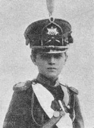 ![]() Figure 1.--Alexei is pictured here in 1915 wearing one of his formal uniforms. I'm not sure what kind of cap he is wearing, perhaps some kind of specialized units like hussars. |