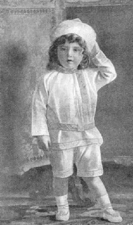 Alexei was breeched on his 3rd birthday. Apparently his first boyish suit was part of his birthday celebration. While he wears his first boyish suit, his curls have not yet been cut.