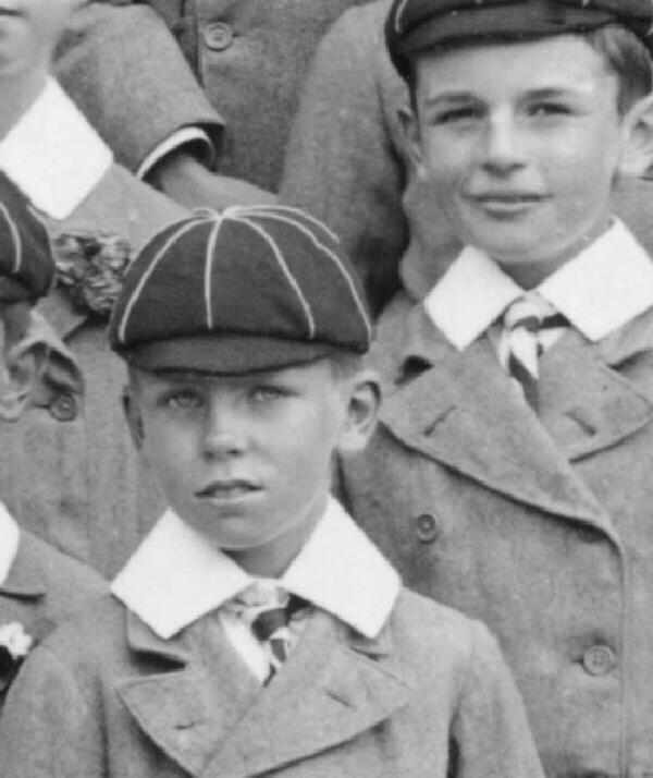 They all seem to be wearing neckties, although that is difficult to make out. It looks like a stripped necktie. Neckties were just beginning to appea in the early 20th century. At some schools the Eton collar was worn without a necktie. Almost all of the boys are wearing these stripped ties. We note, however, a few other ties. There is at least one solid color tie and a tie with very narrow white stripes. This is discussed on the headboy page. We note in particular that many boys have not pulled their toe knots tight up to their collars. By the 1920s this would have considered to be slovenly. At this school, no one seems to have made an issue of it. Which is interesting because in other aspects the headmaster here appears to have been quite strict about the uniform and how it was worn. Apparently this was not part of the collar monitor's assignment.