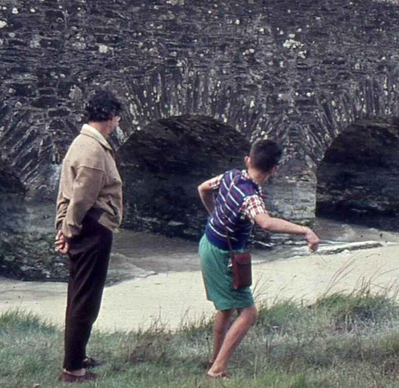 Here we are on holiday in Cornwall (August 1963). . About the time I stopped wearing shorts, except during the summer holidays. Pretty much the same clothes as I had in North Wales the year before. Judging by the length of the shorts, I'd not grown much. The scene is the bridge at Ruan Lanihorne in the days when the
