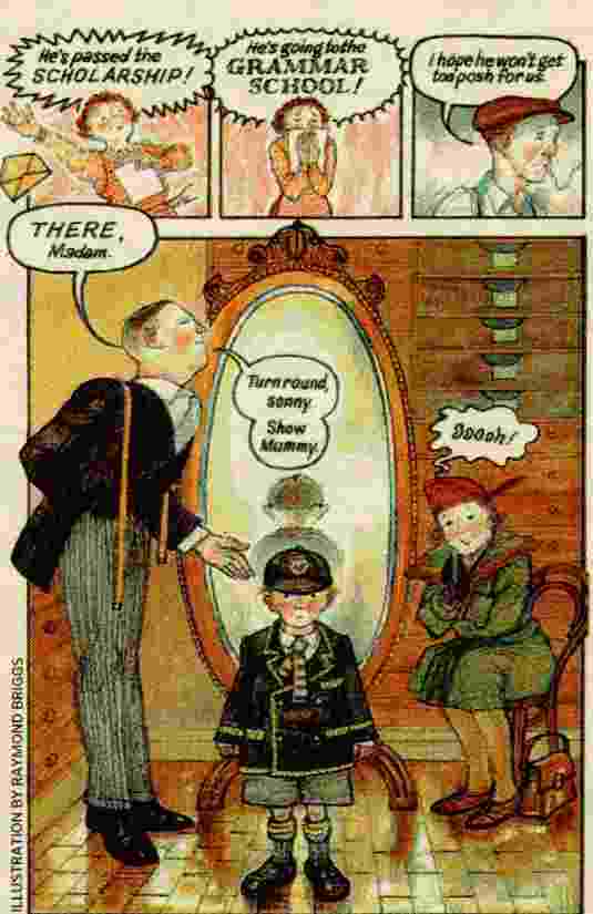 Parents of boys selected for the grammar school were very proud of their sons. In mamy cases these were modest income parents that wanted more for their chilodren than they could afford to provide. They knew that the grammar school offered the opportunity of a professional careet. They would usually want him to wear his school uniform to church or other occasions to show that their son had been selected. Some parents, especially weorking class parents woried that their sons might become "to posh" and begin tomlook downnon their parents.