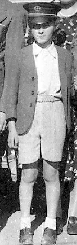 Figure 1.--Ce garçon français porte un uniforme d'École privée pendant les années 30. Notez le chapeau de militaire-modèle et le blazer sans insigne ou revers. This French boy wears a private school uniform during the 1930s. Note the military-style cap and the blazer without a badge or lapels. |