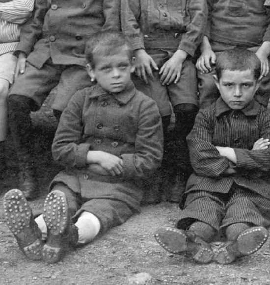 ![]() Figure 4.--Notice the metal studs in the soles of the shoes that these boys are wearing. Presumbably these shoes would last for ever. Image courtesy of the MD collection. |