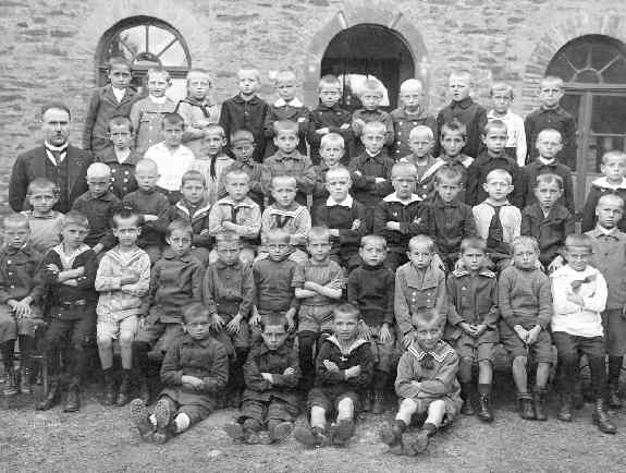 This class photograph unfortunately was undated. We think the number of boys with shaved heads and sailor suits suggest that it was a pre-World War I (1914-18) image. Given the style of the teachers suit and tie, we think it was probably fairly close to the turn of the century, perhaps about 1905. This is, however, only a roufg guess. Hopefully our German readers will help date it with more precission.