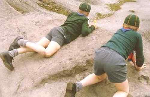 Doc Martens would seem suitable footwear for youth groups. This is especially true for outdoor activities like hiking and camping. In fact they were not at all popular with youth groups or the parents of the children. This is probably because of the military-look and the association with skinheads. Dr. Martens were adopted by one youth group--the Belgian VNJ. Actually, I am not sure that they wear Doc Martens, but they wear black, military-style boots that look like them. Boys in other groups wore them, but they were not approved footwear. We note some British Cubs wearing them, but the type they usually wore were the low-cut shoe the company made for schoolwear.
