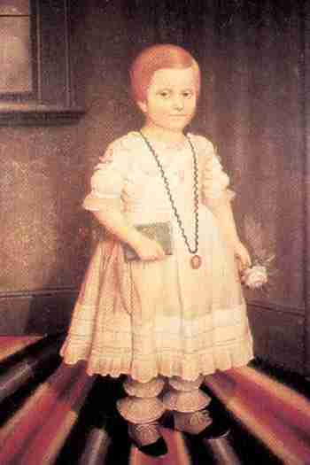 Figure 1.--This New England boy in an image painted about 1840 wears a dress and particularly fancy pantalettes. The painting has been attributed to J.W. Stock. |