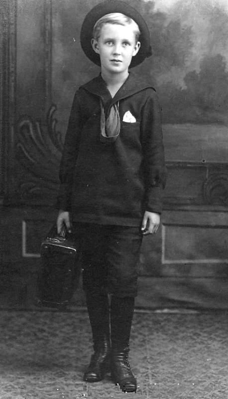 Many American boys wore sailor suits in the early-20th century. They seem most common for younger primary-age boys. Many catalogs offered sailor suits and sailot blouses from about 2 to 8/10 years of age. We do not see teenagers wearing them. We note a Best sailor blouse for boys in sizes 2 1/2 to 8 years of age. We note Sears sailor suits in 1902 offered a wide range of styles. They were for boys 3-10 years of age. We note pre-school and school-age boys wearing sailor suits in this general age range during the 1900s and 10s. The photographic record is very extensive so we have a very good idea as to the popularity among age groups. The photographs generally confirm the catalog offerings. A good example of a younger boy is Japper Barnes about 1910. Younger boys might wear sailor styled tunics while older boys wore middy blouses with matching pants. After about 1910 and especially after World War I (1914-18), the sailor suit was seen as a style for a younger boy. The age of boys wearing sailor suits started to decline, especially in the 1910s. They were still commonly worn by primary-age boys to school and for dress-up occasions.