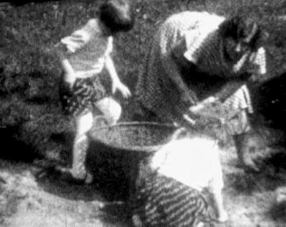 Another episdode, “One Stroke of Butterfly Wings”, shows various family scenes. The main content of the episode concerns the career of the composer, Vaclev Felix, who naively trusted the communist regime and subsequently became deeply disillusioned by his membership in the Party. We see little Vaclev Felix at about age 4 or 5 about 1929 in the rural village of Skokov where the family lived for about half the year to escape the stress and city confusion of Prague (figure 1). He is with his sister. Note the pattern short trousers and while long stockings. Later we see the family participating in a Sokol event. The Sokol Movement was physical (athletic), moral and intellectual training movement with a strong nationalist undercurrent. It was launched in the late-19th century when Czechoslovakia was part of the Austro-Hungarian Empire and overt nationalist movements were prohibited. After independence (1918), they could be nore openly nationalistic. Here we see the family participating in an annual Sokol event. It was a tradition that contributed importantly (but unofficially) to the sense of Czech nationalism. The Sokol festival involved parades, and in this shot (Figure 1--put your cursor on the image). we see a boy and his sister wearing special festival costumes worn over their normal school clothes. Note the short trousers and brown long stockings of the period, just before the Nazi takeover in 1938, after which the Sokol was forbidden. Their mother is wearing a traditional Bydzov costume, reflecting the native folk culture.
