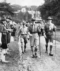 Figure 2.--English Scouts are seen hear with the Prince of Whales at the World Jamboree in 1929. The wear the traditional hat with long dark colored shorts and light colored socks. |