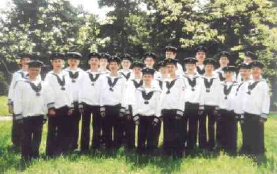 The "Singerknaben vom Wienerwald" have kept the tradition of sailors suits. This seems a little stange today as Austria is now a land-locked country. As one HBC contributor writes, "Imagine all these boys "sailing" in the woods of Vienna!" This was not always the case, however, as Austria once had a navy--including battleships. Actually, however, sailor suit choir costumes are a realtively recent development dating only from the end of World War I. The sailor suit, however, is a popular style for boy choirs not only in Austria and Germany, but also Scandinavia.