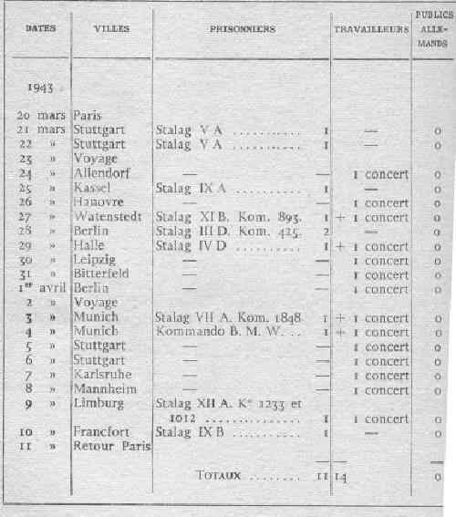 The Allies in 1943 began the Around-the-Clock bombing campaign. It was becoming dangerous to travel to Germany, although the bombing was just beginning and train travel was still relatively safe. A French reader tells us, " My friend Robert who was a chorister at the time told me that in north Germany, during a performance the PCCB had to suddently go into a cellar because of a bombing raid."