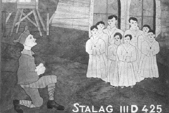I'm not entirely sure how the concerts were conducted. The POW camps certainly did not have theaters for such events. Some photograps and drawings show the boys making emprotu appearances and even singing in the baracks where the men were billited. The PCCB performed only French traditional songs and some holly chants. I believe they didn't put on their albs, but I am not sure. Yhe POWs were aware of the visits in advance. It was a big event for them. Despite the fact the food was bad quality, the POWs found chocolate for the boys' milk. The POWs made considerable effort to get that. The camp guards were rather surprised of that. The NAZI escort didn't like these French boys but respected them. The visits to the camps were very emotional. The boys were very young and did not fully anticipate the imact they would have on the POWS. The POWs saw in these innocent children a part of their country and sometime their own child. Many of the men were deeply affected by the performances, often reduced to tears. At the end of the concerts, many of the POWS wanted to embrace and kiss the boys. The NAZIs prohibited this. One time a POW came on stage and said, " Au nom de tous je fais un baissé à cet enfant qui à l'âge de mon fils. " The next day this man got into trouble with the camp authorities. That was a sort of scandal. The Germans didn't understand that a man would kiss a boy.
