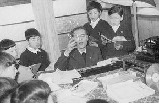 Figure 1.--Here is the Choir founder Shinichi Hasegawa with some of the choristers in their studio at Shin-Okubo during 1958. |