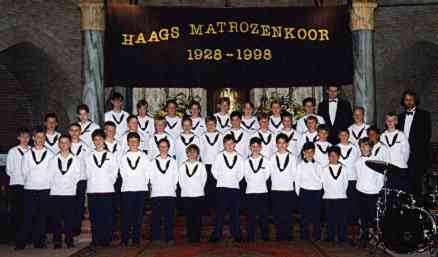 The Haags Matrozenkoor (The Hague's sailor-boys choir) was founded in 1928 and celebrates its 70th anniversary in 1998. Originally a church boys choir, it has become a much sought-after choir performing successful concerts both at home and abroad. The boy's ages range from 7 to 15 years. After Sipke de Jong and Evert Wagter they are singing under the inspired baton of Nico Hovius since September 1998. The repertoire consists of both classical and modern music, as well as sacred and secular music and, reflecting the linguist abilities of the Netherlands, is sung in many languages. The choir performs many concerts, especially at Christmas time. For Easter it is traditional to perform the St. Matthew passion by J.S. Bach in various towns. Since 1995 the choir performs once a year together with the famous orchestra of The Hague: The 'Residentie Orkest', a great classical work. The choir conductor is Nico Hovius. The choir is divided into 3 groups. Boys of 7-8 years jointhe A-class without audition. They sing, in unison, an international repertoire which they learnby heart. They give occasional concerts in hospitals and nursing homes.After approximately 2 years the boys are promoted to the B-class and after a further moreyear, to the Concert-class (C-Class). Meanwhile, they have learned the entire repertoire byheart. The B-Class and the Concert-class practise together twice a week. The boys for concerts and other performances wear authentic sailor suit uniforms, giving an Dutch national touch to the boys' performance. The sailor suits recall Holland's long maritime history. Little Holland once had the most powerful navy in Europe--rivaling that of England itself.