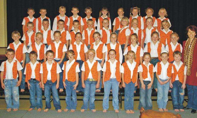 Laerskool Eversdal Primary School is another of several South African schools that have important choral programs. Laer is derived from the Dutch lager(e). Laerskool in Dutch is Lagere School. That means primary or elementary school in English. It is rather unusual for public schools to have such an extensive choral program, but we see it in South Africa. This school is a bilingual English-Akrikaan school in Durbanville near Cape Town. The school has a Junior Choir, a Senior Choir, and also a Speech Choir (Spreek Koor). This may be a musical theater choir. The children are probably in the photograph here wearing the costumes for one of theor show performances. Could it be 'Oklahoma!' A reader thinks the outfit here is tge choir's standard uniform, "I believe the school choir wear this outfit to their singing venues. I have a CD of them and this appears to be the choir clothes. I think this is Boer community."