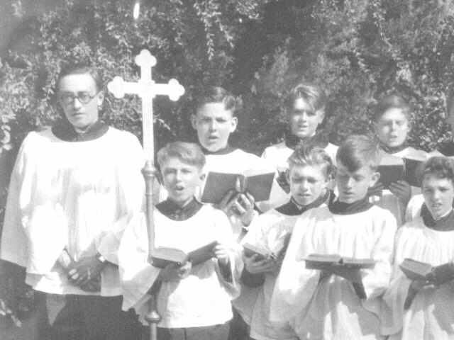 Figure 1.--Here we have a photograph of the St. Thomas Boy Choir in 1927. It was located in Hollywood California. Unfortunately we know nothing more about the choir. It is a local church choir. The sang in choir robes, but I don't believe that they had any other uniform. |