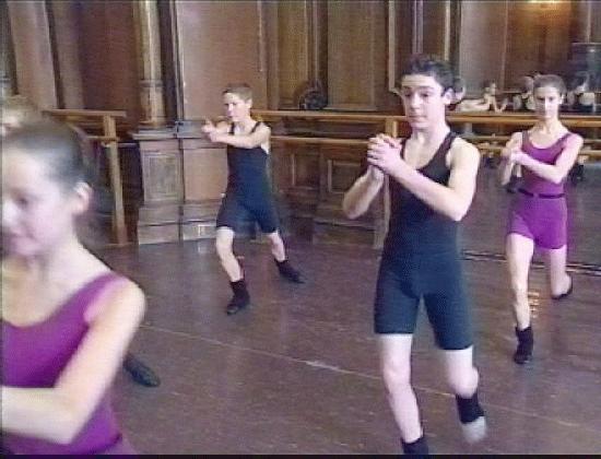 Ballet is a very traditional art form. Many basic practice garments have remained unchanged over time, although the schools ahve been more receptive to new fabrics and materials. Many traditional schools have had boys practice in an open-neck dance shirt, both skeeved and tank-top styles. Schools have also used leotards and briefly cut shorts--to allow a maximum of freedom of movement. These styles are worn mostly in Russian and Eastern European schools. We have noticed some schools in recent years accepting some modern styles such as snug fittiong long-legged lycra shorts such as commonly use by bicycle racers. These are popular in American and European schools. Other schools have a more traditional styles. One school uses a kind of unitard with knee-length legs (figure 1).