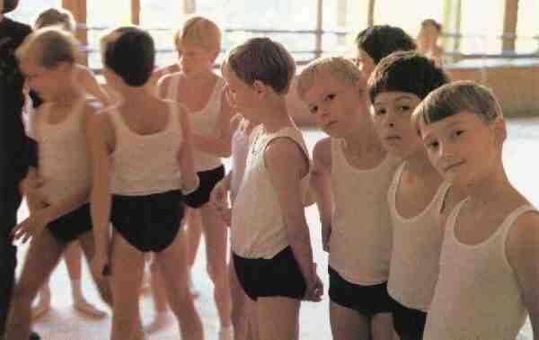 We are not sure when the love of the ballet moved from the court and aristocracy to the common man in Russia. This could have occurred before the Revolution, but was no doubt furthered by the Communists. To the Soviets, support of the arts was pursued as a matter of national or idelogical pride. Capable students were trained in special schools which opened opportunities and benefits. This may be one of the reasons that ballet is viewed so much more differently in Russia than in many European countries and America by the children involved. Less claer is why ballet is sompopular among the general public. The chosen few talented Soviet children attened boarding schools where the children were among others pursuing ballet and interested in the arts. I think the average Russian child may have had much less opportunity to particvipate in ballet than a child in America or Europe. I am also unsure what the average Soviet boy thought about ballet. HBC is also unsure to what extent attitudes have changed in modern Rissia.
