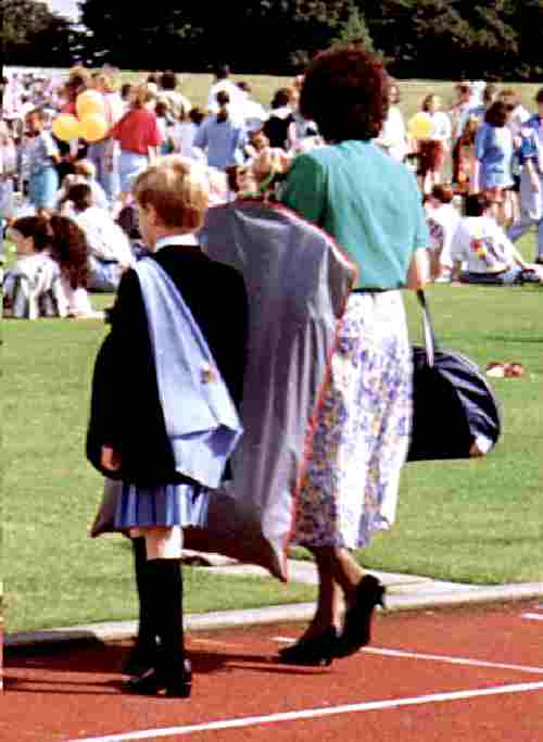 HBC believes that mostvof the boys are anxious to change out of their costumes. They often do so on their own with little prompting from their mothers. Another factor, however, is that the costumes are expensive--often more expensive than a Scottish kilt. Thus mother often encourage their sons to cahnge outvof their costumes as soon as possible.