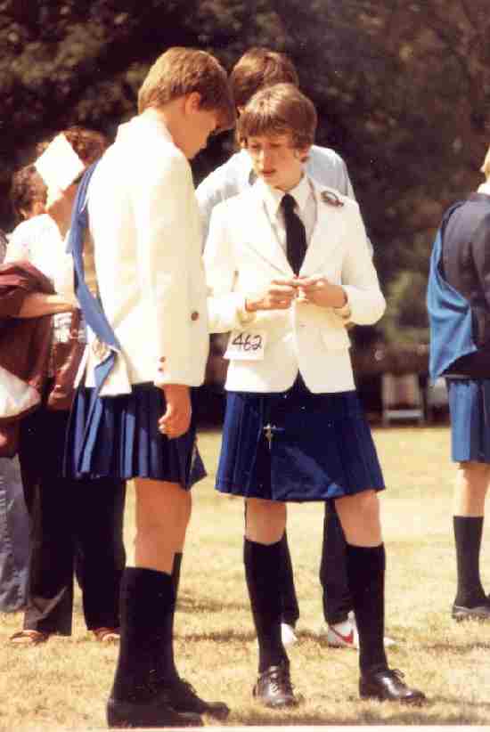 ![]() Figure 1.--The colors of the jackets worn by boys doing Irish dances varies widely. Some boys wear white jackets, but colored ones are more common. |