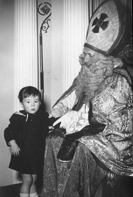 St. Nicholas or Sinterklaas is a key part of the Dutch Christmas. He is also the origin of the American Santa Claus. Sinterklaas visits the children with a bag full of presents. The figure of Sinterklaas is a curiously Catholic bishop (complete with a bishops hat and mitre) is this destinctly Calvinist country. It shows just how deeply rooted the Christmas celebration is in the Netherlands. Sinterklaas has no reindeer, but instead a horse. It is not, however, precisely a Christmas tradition as he comes on St. Nicholas Eve, 3 weeks before Christmas. The boy in the picture here puts a shoe filled with hay and a glass filled with water in front of the fire place (figure 1). This is an old tradition in the Netherlands. Hay and water are for the grey (horse) of Sinterklaas (St Nicholas). In the days before Sinterklaasavond (St Nicholas eve) on December 5, the children put there shoes in front of the fire place and sing their St Nicholas songs (sinterklaasliedjes). At the bottom of the photograph a part of one of these songs is printed: Hier zet ik wat water, (Here I put some water,) Daar wat hooi voor 't paard, (Their some hay for the horse,) Want dat trouwe beestje (Because that faithful little horse) Is het heus wel waard! (Deserves that all really!).