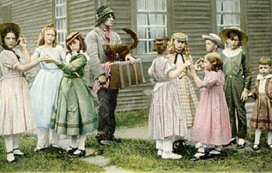 then my pants with side openings didn't have side pockets)." [HBC note: The outfit the boy wear is a costume based on early 19th century garments. How accurate it was, HBC is not sure.]