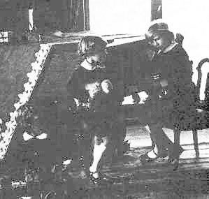 Boys still wore fancy velvet Fauntleroy suits at the turn of the Century, but by the 1910s, lace collars had been replaced with ruffled collars and the blouses were much plainer than before. Sailor suits were still commonly worn. Knickers had begun to replace kneepants. Black long stockings were normally worn when dressing up. Some boys wore white long stockings, but black was much more common. Major changes occured in boys clothes and thus Christmas attire after World War I (1914-18). It is interesting to speculate as to just why styles changed so radically after the War, but major changes in fashion are not uncommon after such major