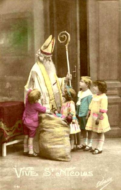 There was an actual historical St. Nicholas. He was an important part of Christmas in France through the 19th and early 20th century. He was generally depicted as a revered clerical figure in France. He was commonly seen as an old man with a long beard. Sometimes he was given a red cape. He was the friend of the children. Throughout Europe, St. Nicholas has traditionally been the patron saint of children. This has been true in Austria, England, France, Germany and many other countries. Traditions developed about St.Nicolas and Christmas and many of these traditions varied from country to county. In Austria and Germany Nicolas is Klaus, thus he was St. Klaus. (Explaining why St. Nicolas was the inspiration or Santa Clause in America. Until World War I St. Nicolas was the primary Chrismas figure for French children. It was then Père Noël was introduced. Gradually Père Noël has become the major Christmas figure for French children, replacing St. Nicolas. We are not sure who was behind this shift.