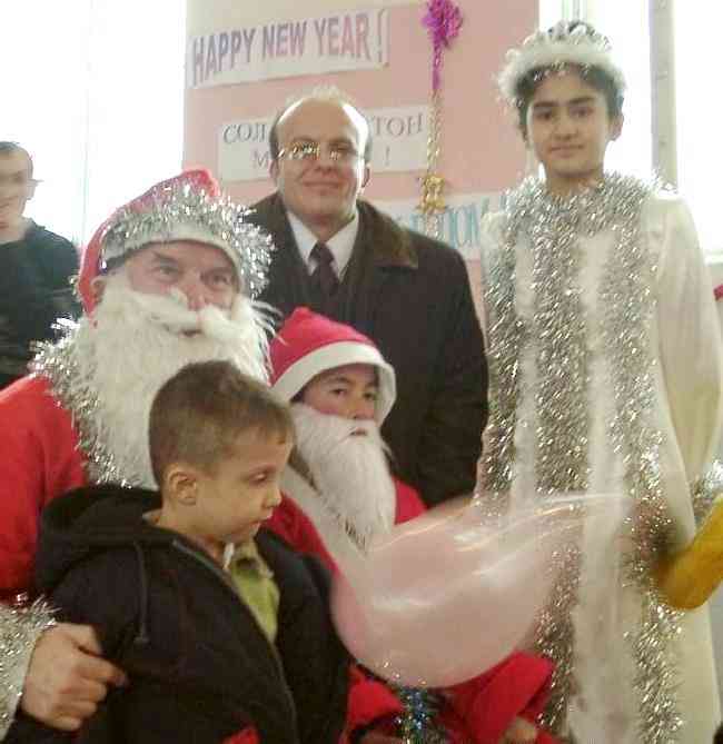 presents to children. A HBC contributor writes, "Yours truely is considered to have the statue to be this person. On 26 December, dressed in my red robe and colourful sash I visit the school. First however we are supposed to be going to the snow in the mountains to film a video of Grand Father Frost in the snow coming."