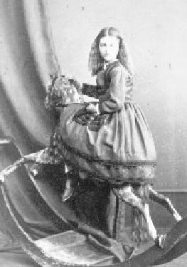 protagonist's riding the other way, as a child, is considered scandalously unorthodox by her neighbours, and possibly dangerous. I can check this." [Nesvet] [HBC note: The side saddle phonemon is interesting and actual details would be a helpful addition to HBC. I think that it is fairly well established that girls and women rode side saddle in the the 19th century. Actual details and references, however, would be helpful. Also for our purposes in using props to determine gender in old portraits it would be especially interesting to know what occurred in the nursery.]