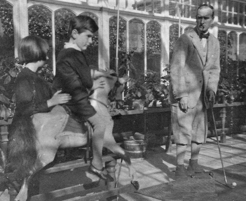 We note fewer hobby horses in the 20th century. A good example is American children from New York, the Fitzroy-Carringtons, in 1906 playing with their toy horse.