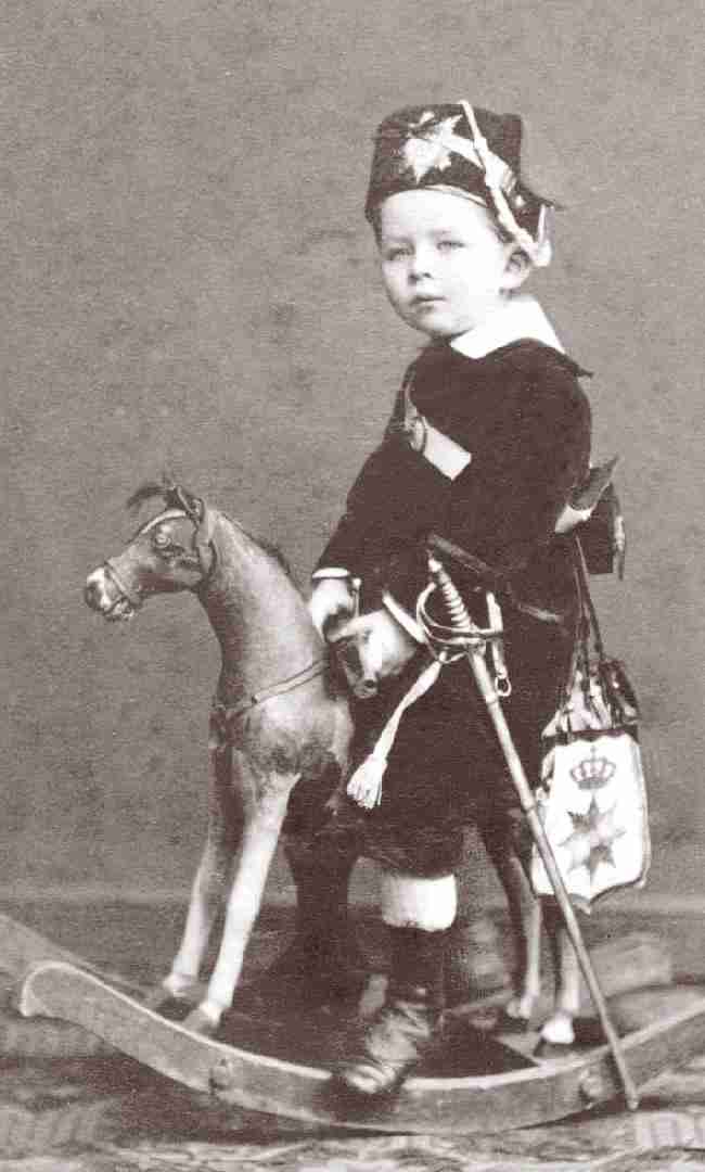 While we have fewer German portraits, we have enough to suggest that hobby horses were also popular in Germany. The German word for hobby/rocking horse is "Schaukelpferd". Some German portraits are relatively easy to identify because the children wear uniforms (figure 1). Some even had swords. While not unknown in other countries, these uniform portraits, especially ones with swords, seem especially common in Germany. This CDV was probably taken during the 1880s in Magdeburg, Germany. We are unsure about the uniform. Note the sun-burst symbol on the cap which is repeated with two stars on the side pouch. Hope a HBC reader will help us identify these symbols. We note two German boy having fun with their hobby horse. A stick horse is "Steckenpferd". A reader tells us that thre is an expresion in both German and Dutch, "That is his stickhorse". It means "That is his favorite thing". It suggests that these stick horses and hobbyhorses as well were exceeding popular with German and Dutch boys.