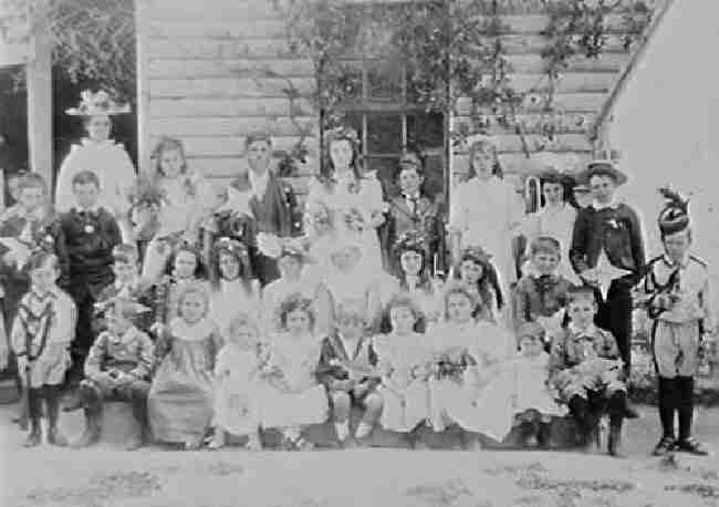 Figure 1.--Children's costumae parties could be quite elaborate affairs. They used to be more popular than the case today. This Australian photograph is undated, but wa takebn some time in the early 20th century. |