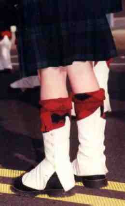 Some bands have the pipers cover their shoes with white spats. The meticulous