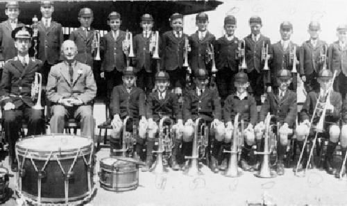 Figure 1.--This is an Australian school band in 1933. This is the Ashby School, Geelong. It looks to be a marching band, but the boys wear their school uniform, not a special band uniform. Note the school caps. |