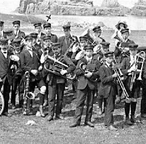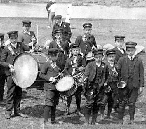 These bands were made up of amateur musicians of varying ages. The primary qualification was musical talent or in some cases more importantly the actual possession of a musical instrument. Generally they were boys, youths, and young men. Older men sometimes did not have the stamina needed for playing an instrument in a marching band. While it varied, boys were often important participants in these bands. Note for example the school boy who wears a medal fixed on the reverse of his jacket. This indicated that he was a good schoolboy. These bands were normally all male bands. This had now changed and both girls and boys now participate in these brass bands.